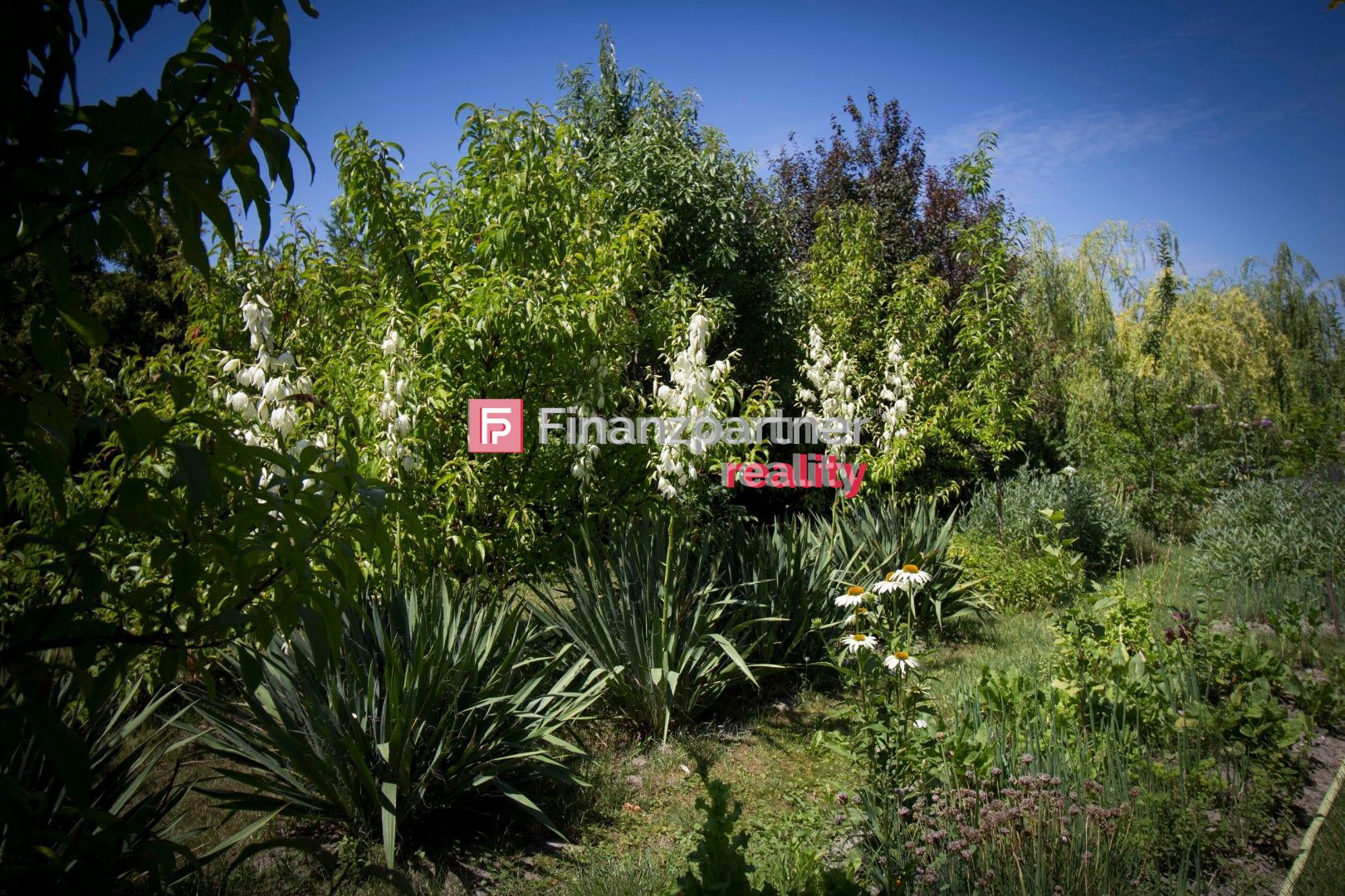 Záhrada pôsobiaca ako oáza je plná nestriekaných, rôznych druhov byliniek, ovocných a okrasných stromov a zeleniny, kvetín, kríkov, bobuľovitého ovocia, orechov, mandlí, jedlých gaštanov, liesok, rôznych druhov stolovného hrozna, hurmikaky, rôznych odrôd broskýň, višní, hrušiek, jabloní, jahôd, malín, artičokov a veľa iných plodín. Nachádzajú sa tam aj dva skleníky, ktoré sú využiteľné aj v zime. V záhrade nechýba aj zastrešené letné posedenie.