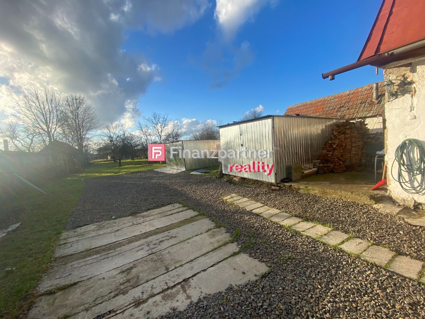 Za domom sa nachádza 2x plechová garáž, hospodárske miestnosti,