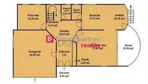- 1 PZP: - vnútorný bazén o rozmeroch 6x3 m s proti prúdom, technické miestnosti súžiace prevádzke bazéna, sauna, sprcha a WC, odpočiváreň so strojmi na fitnes, sklad (pôvodne bol plánovaný ako vínotéka) a východ na vonkajšiu terasu do záhradnej časti pozemku.