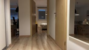 Pozostáva z priestrannej chodby, obývačky, spálne, kúpeľne a samostatného WC.