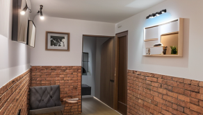 Zvlášť vchod do kancelárskeho priestoru, v ktorom je kuchynská linka a úložný prietor alebo priestor predpripravený na kúpelňu dotvára možnosť samostatného bytu.