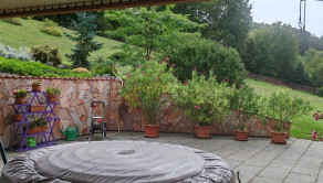 Terasa je vydláždená a podkytuje komfortný relax pre jedinca ako i záhradné rodinné párty. Dvor je slnečný a orientovaný na všetky svetové strany. Je vzdušný, s vlastnou lúkou plnou bylín , a okrasných drevín. Závlaha z vlastnej studne na pozemku je samozrejmosťou.