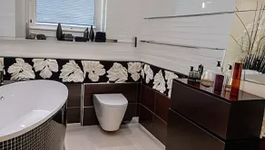 kúpeľňa s vaňou a sprchovým kútom