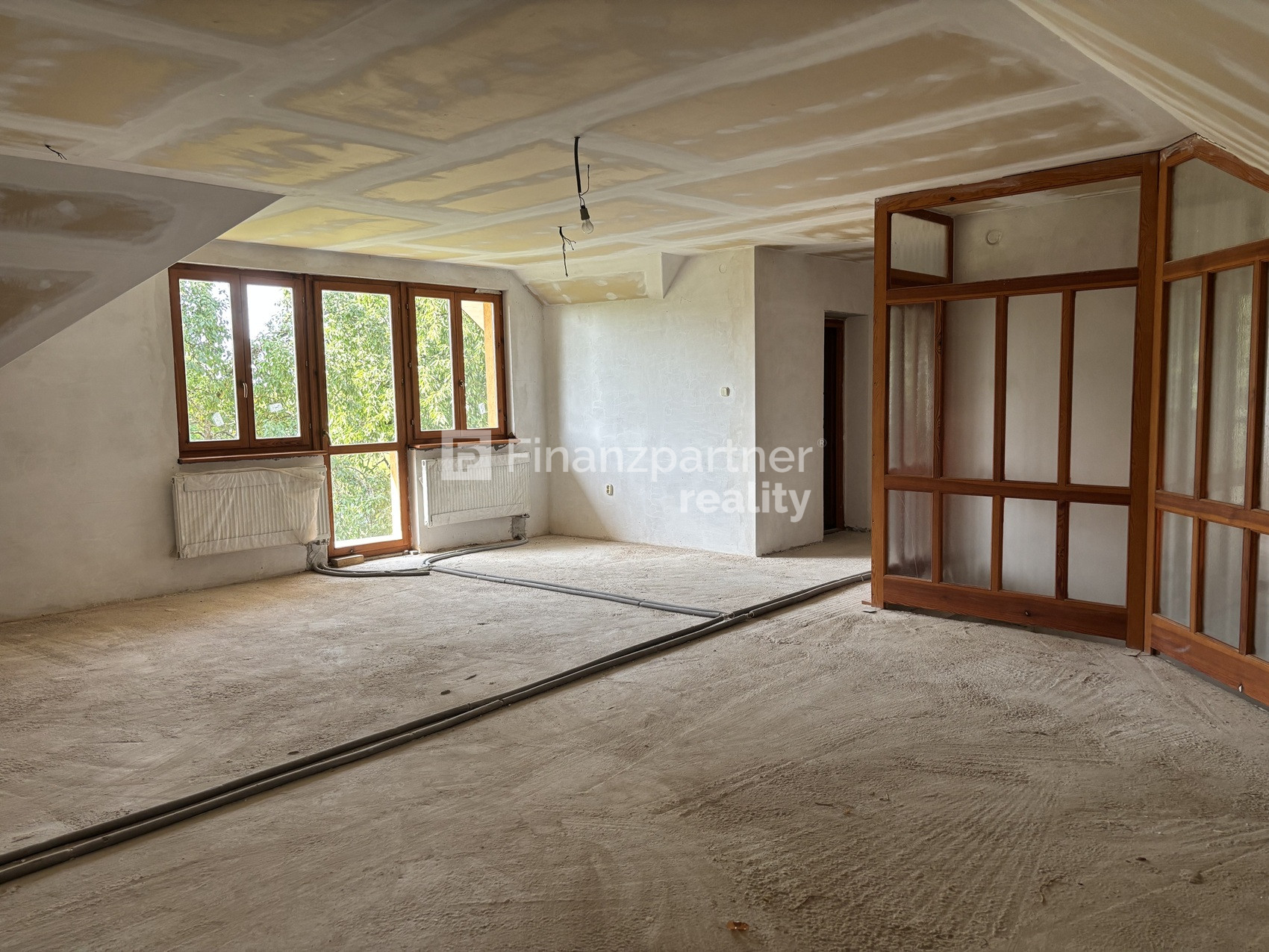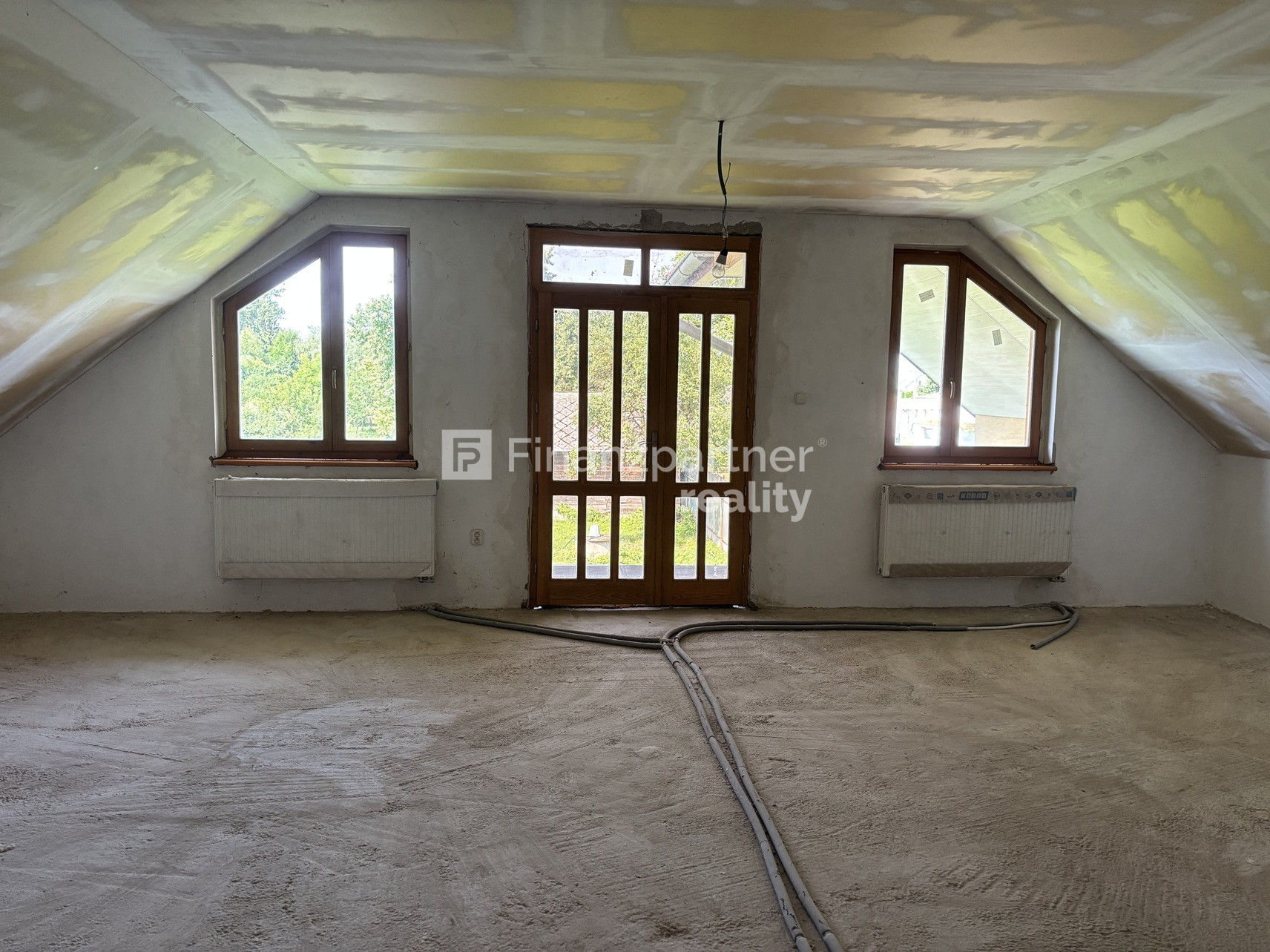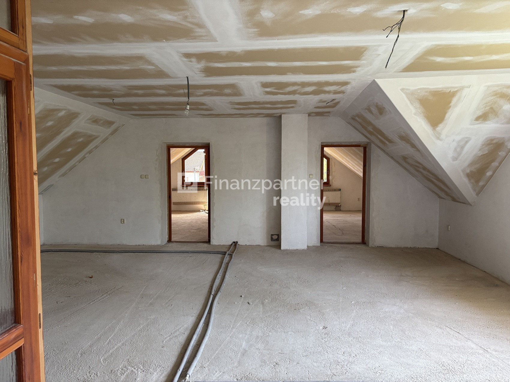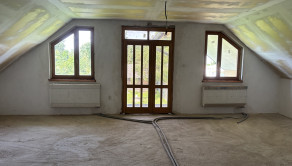- Na poschodí sadrokartónové stropy, betónové podlahy