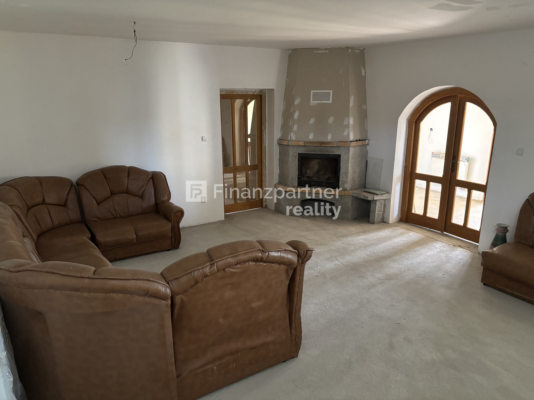 - Priestranná hala so schodiskom na poschodie a otvoreným krbom na drevo