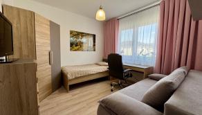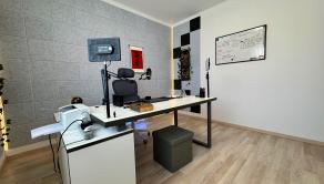 Home Office: V pracovni je nainštalovaná špeciálna odhlučnená akustická zábrana (stena s obkladom), ktorá vám zaručí dokonalé ticho pre prácu.