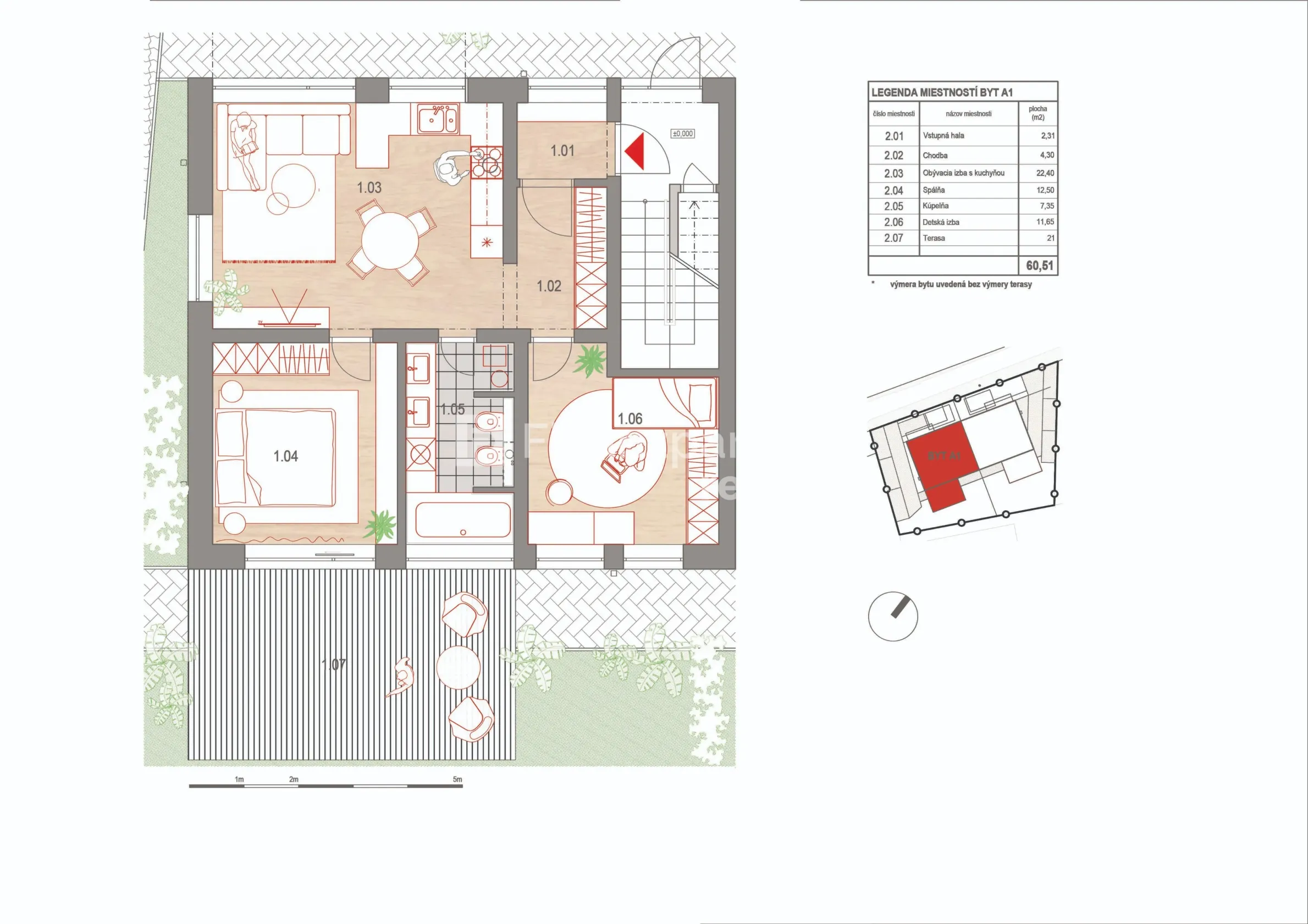 Maximálne súkromie: Každý byt má vlastný vchod, vlastné merače energií a oddelené dispozičné riešenie.