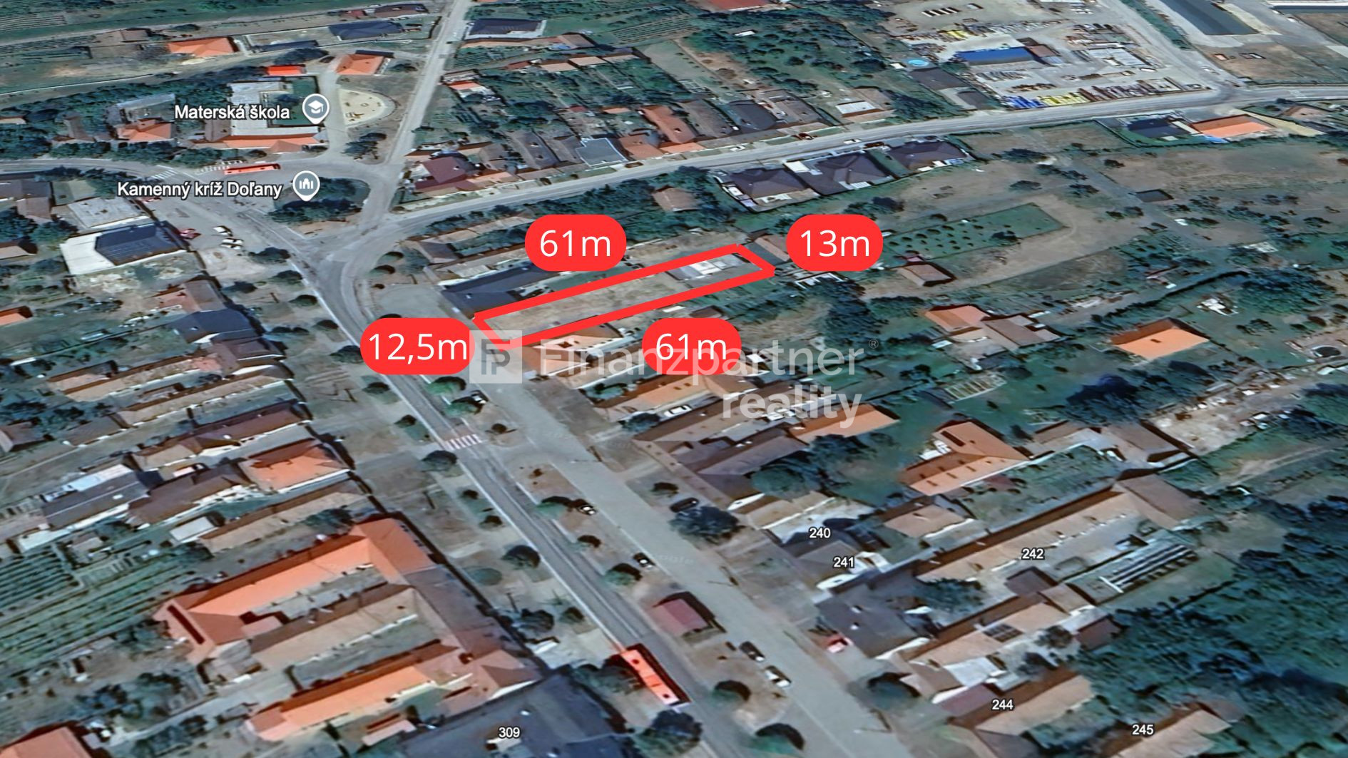 • dĺžka pozemku 61m